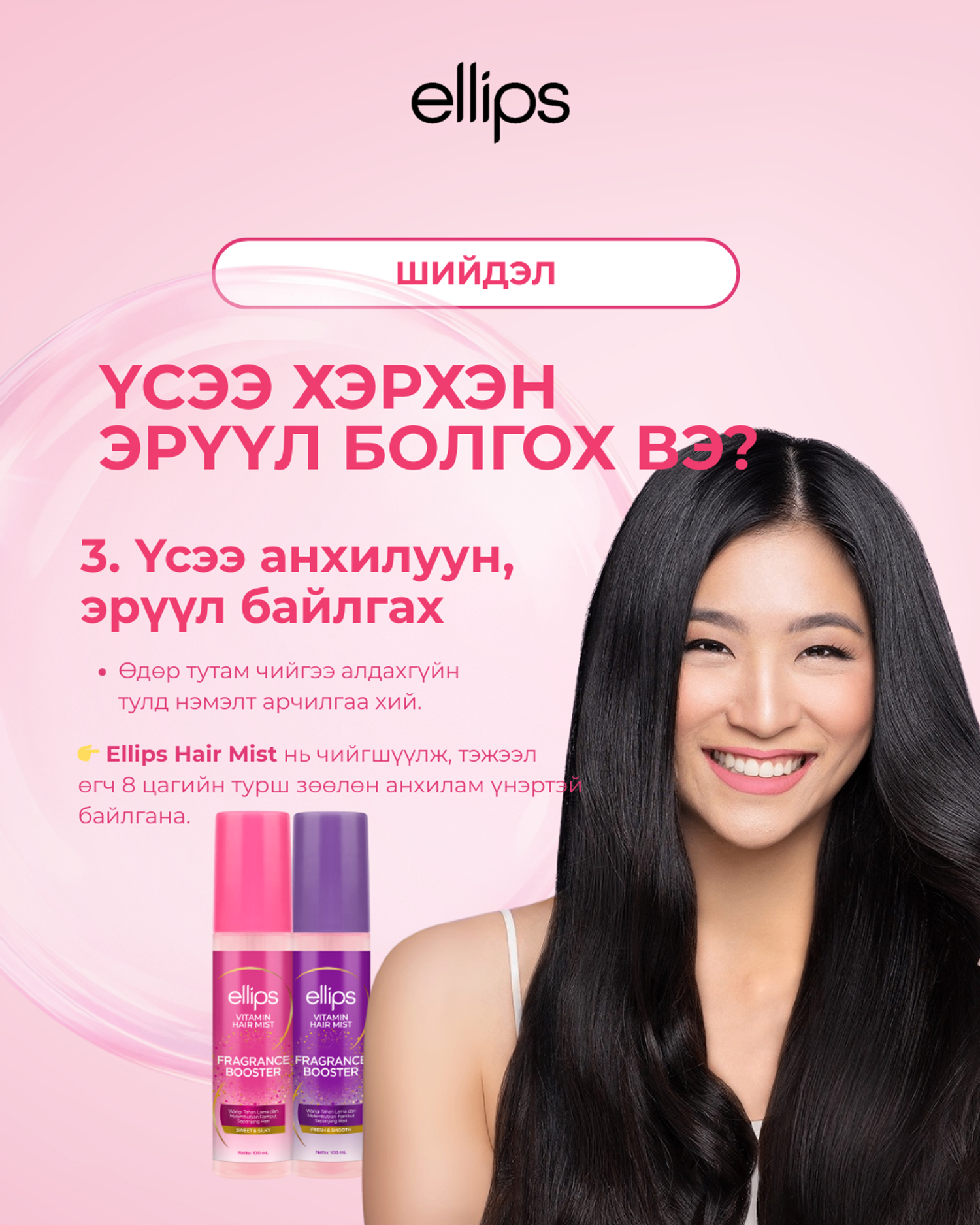 Үсээ хүссэн үедээ, хаана ч шууд цацаж, анхилуун үнэр бий болгож, эрүүл, гялалзан байдлаа хадгаалаарай.