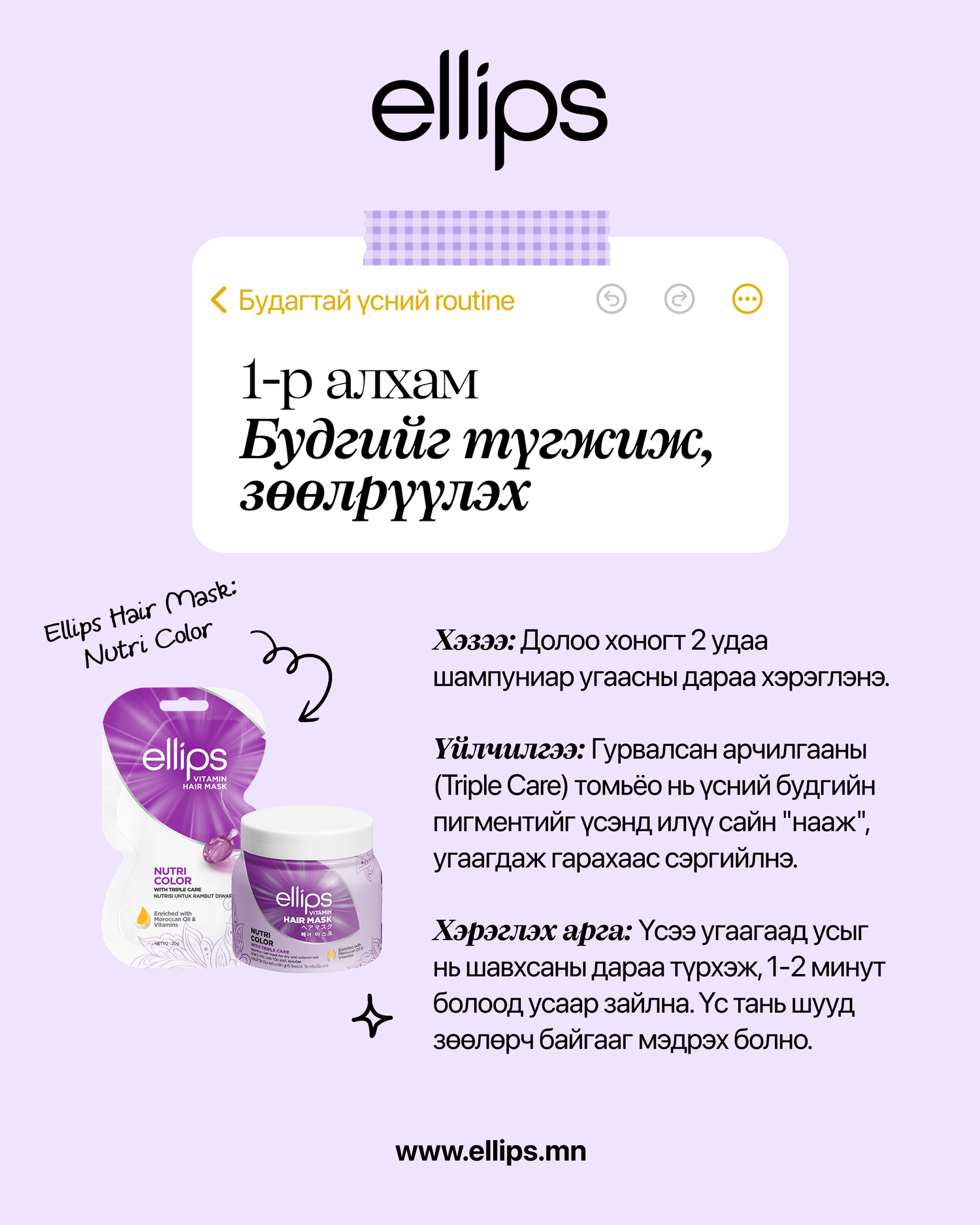 Будагтай үсний маск 200гр - 1 ширхэг Будагтай үсний витамин - 1 ширхэг Хуурай шампунь 50мл - 1 ширхэг *** 100.000 дээш худалдан авалтанд хүргэлт үнэгүй ***